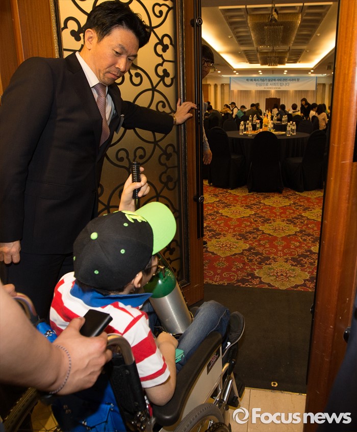 (대전=포커스뉴스) 아타 사프달 옥시레킷벤키저 대표와 임원진이 20일 오후 대전 유성구 아드리아호텔에서 옥시의 가습기 살균제 제품 피해자와 면담을 마련한 가운데 피해 어린이가 입장하고 있다.