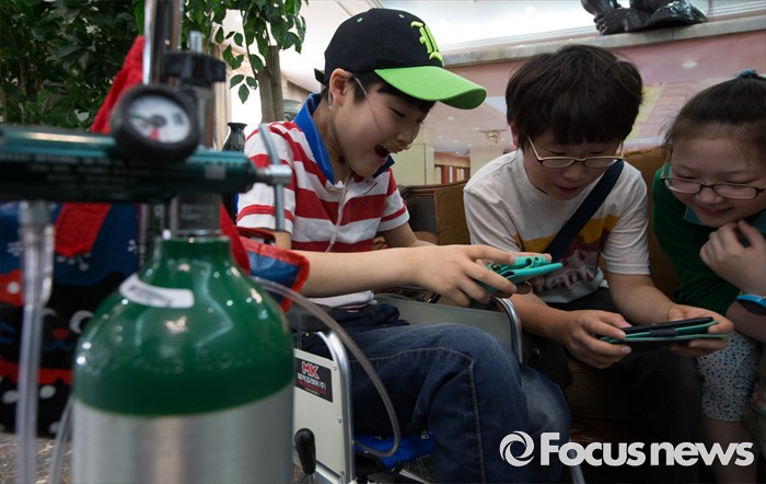 (대전=포커스뉴스) 아타 사프달 옥시레킷벤키저 대표가 20일 오후 대전 유성구 아드리아호텔에서 옥시의 가습기 살균제 제품 피해자와 면담을 마련한 가운데 피해 어린이들이 핸드폰 게임을 하고 있다.