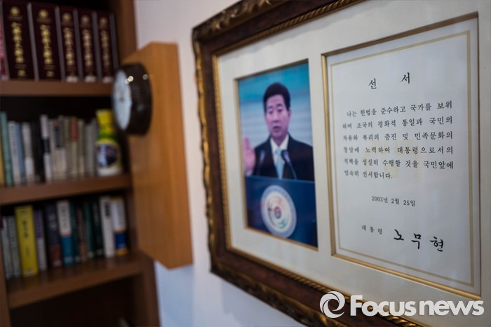 이어 "상생의 정치는 멀리 있는 것이 아니라 정파와 이념을 초월해, 서로 협력하고 포용하는 정치를 구현하는 것이며 바로 우리 국민의 뜻을 받드는 길"이라고 말했다.1일 오전 경남 김해시 봉하마을에 위치한 고 노무현 전 대통령의 사저 '지붕 낮은 집'의 서재가 일반인에게 공개되고 있다. 사저는 고 노 전 대통령 부인 권양숙 봉하재단 이사장이 지난해 7월 거처를 옮기면서 일반인에게 공개 준비를 시작해 시민들에게 개방을 하게됐다. 2016.05.01 이승배 기자