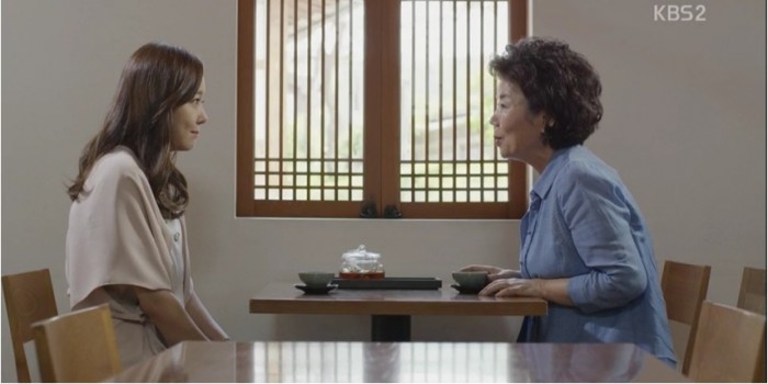 이날 방송에서는 주인공 이상태(안재욱 분)와 안미정(소유진 분)이 사귄다는 소식을 들은 이상태의 어머니 오미숙(박혜숙 분)이 사랑의 방해꾼으로 나서면서 시청자의 궁금증을 자극했다.안미정(소유진 분·왼쪽)이 오미숙(박혜숙 분)과 얘기를 나누고 있다. KBS 드라마 '아이가 다섯' 22일 방영분. <사진제공=KBS>