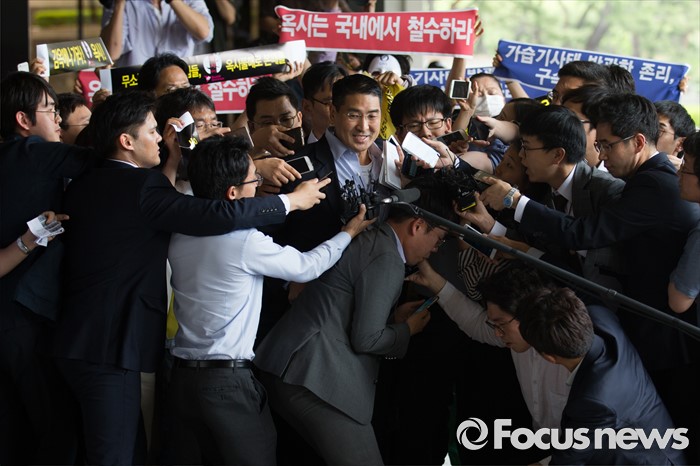 | △ 취재진 둘러쌓인 존 리 옥시레킷벤키저 전 대표 |