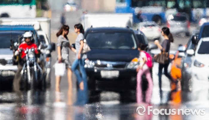 신동현 국가태풍센터장은 "최근 고온화 경향을 고려할 때 강한 강도의 태풍일 수 있으므로 주의가 필요하다"고 당부했다.(서울=포커스뉴스) 서울에 올해 첫 폭염주의보가 내려진 20일 오후 서울 영등포구 여의대로 위에 지열로 인한 아지랑이가 피어오르고 있다. 2016.05.20 오장환 기자