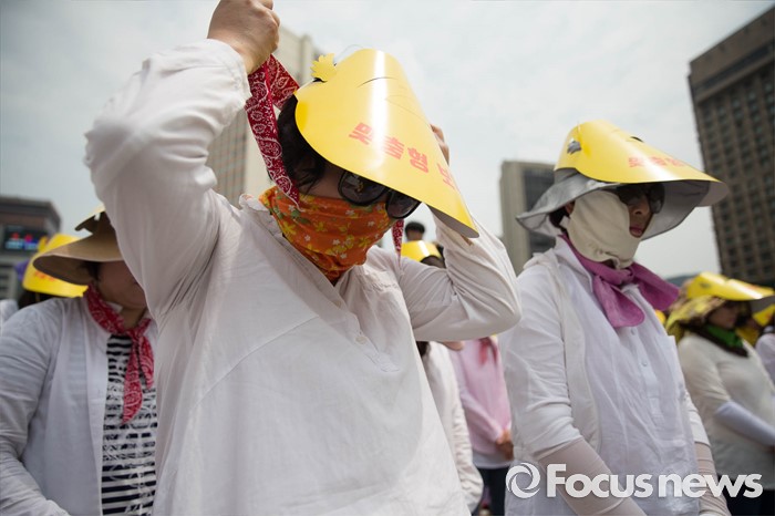 (서울=포커스뉴스) 23일 오후 서울 중구 시청광장에서 보육관계자들이 '어린이집 0~2세 맞춤형보육 제도개선 및 시행 연기'를 촉구하며 결의대회를 하고 있다.