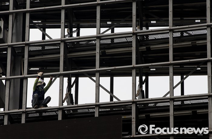 (서울=포커스뉴스) 23일 오후 서울 중구 태평로 프레스센터 옥외 전광판 위에서 관계자들이 보수 및 교체 작업을 하고 있다.