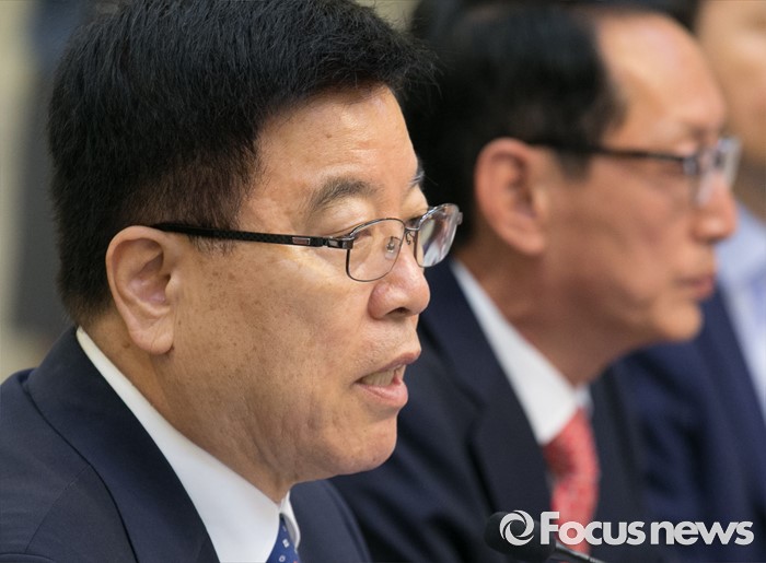 (서울=포커스뉴스) 24일 오전 서울 여의도 국회 귀빈식당에서 열린 조선·해운업 구조조정 관련 당정협의에 참석한 김광림 새누리당 정책위의장이 모두발언을 하고 있다.