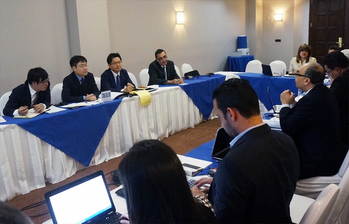 (서울=포커스뉴스) 여한구 산업통상자원부 FTA정책관이 23일(현지시간) 온두라스 수도인 테구시갈파에서 산업부, 기재부, 농축산부, 해수부 등 관계부처로 구성된 정부대표단의 한국측 수석대표로 참석해, 멜빈 E. 레돈도(Melvin E. Redondo) 온두라스 경제통합통상차관을 수석대표로 중미 6개국 정부대표단과'한-중미 FTA 제4차 협상'을 개최하고 있다. <사진제공=산업통상자원부>