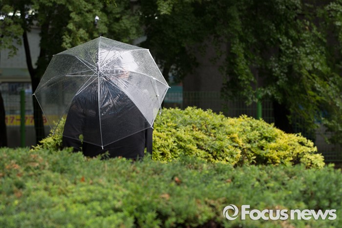 (서울=포커스뉴스) 전국이 흐리고 비가 내리는 24일 오전 서울 마포구 공덕역 인근 거리에서 시민들이 우산을 쓰고 지나가고 있다.