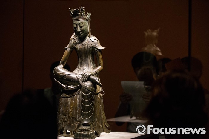 (서울=포커스뉴스) 24일 오전 서울 용산구 국립중앙박물관 기획전시실에서 열리고 있는 '한일국보 반가사유상의 만남' 전시에 우리나라 국보 제78호 금동반가사유상이 전시돼있다.
