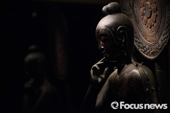 (서울=포커스뉴스) 24일 오전 서울 용산구 국립중앙박물관 기획전시실에서 열리고 있는 '한일국보 반가사유상의 만남' 전시에 일본의 국보 나라현 주구사 목조반가사유상이 전시돼있다.