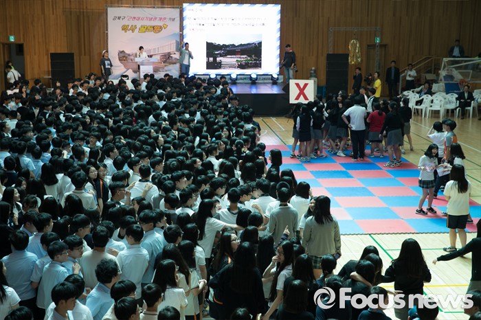 (서울=포커스뉴스) 24일 오후 서울 강북구 신일중학교 체육관에서 열린 근현대사기념관 개관 기념 '역사 골든벨'에 참석한 학생들이 예선전 O.X 퀴즈를 풀고 있다.