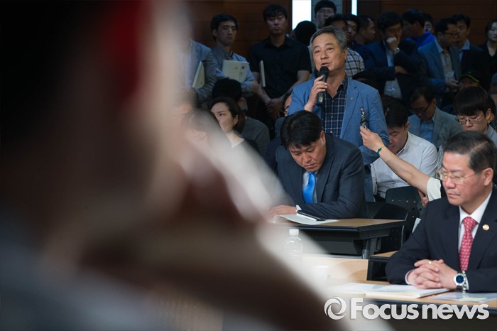 (서울=포커스뉴스) 24일 오후 서울 중구 포스트타워에서 열린 부정청탁 및 금품 등 수수 금지에 관한 법률(일명 김영란법) 입법예고안에 대한 공청회에 참석한 시민들이 질문하고 있다.