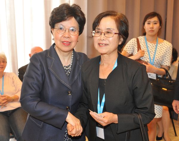 한편 추도식이 진행되는 이번 총회기간 중 제8회 WHO이종욱공공보건기념상 시상식도 진행된다. 제8회 수상자로 선정된 메스다기니아(Dr. Alireza Mesdaghinia) 테헤란 의대 공중보건학 교수는 이란 공중 보건과 지중해 동부 지역 공중 보건 인력 양성을 위해 헌신한 공로를 인정받았다.마가렛 찬 WHO 사무총장과, 이종욱 전 사무총장 부인 가부라키 레이코 여사 <사진출처=보건복지부>