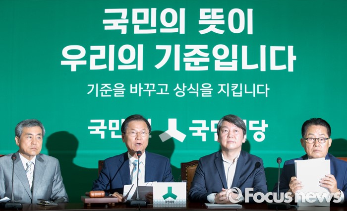 (서울=포커스뉴스) 25일 오전 서울 여의도 국회에서 열린 국민의당 최고위원회의에 참석한 천정배(왼쪽 두번째) 공동대표가 모두발언을 하고 있다.
