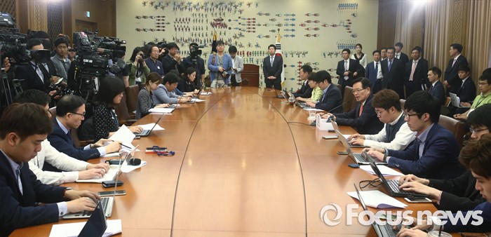 취재진과 기자간담회하는 정의화