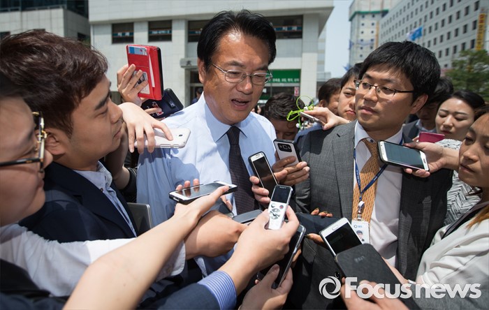 (서울=포커스뉴스) 정진석 새누리당 원내대표가 25일 오후 서울 여의도 새누리당 당사에서 당사 경비 및 의경 격려를 마친 후 취재진들의 질문을 받고 있다.