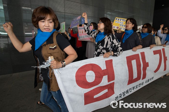 (서울=포커스뉴스) 25일 오전 서울 중구 서울시청 앞에서 서울시 장애인 부모회 회원들이 발달장애인 종합대책요구에 대한 기자회견이 열렸다.