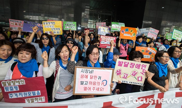 (서울=포커스뉴스) 25일 오전 서울 중구 서울시청 앞에서 서울시 장애인 부모회 회원들이 발달장애인 종합대책요구에 대한 기자회견이 열렸다.