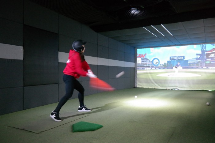 한편, 스트라이크존은 25일 현재 서울 논현구장(직영점)을 비롯 서울 잠실구장, 수원 영통구장, 광주 첨단구장, 대구 칠곡구장, 부산 부산대구장, 창원 상남구장, 부산 경성대구장, 광주 봉선구장, 대구 다사구장, 전주 신시가지구장, 청주 오창구장, 대구 수성못구장, 구미 인동구장, 광주 상무구장 등 15개 구장을 오픈했으며, 6월말까지 7개를 추가할 예정이다.한 여성이 '스트라이크존'에서 스크린야구를 즐기고 있다.<사진제공=뉴딘콘텐츠>