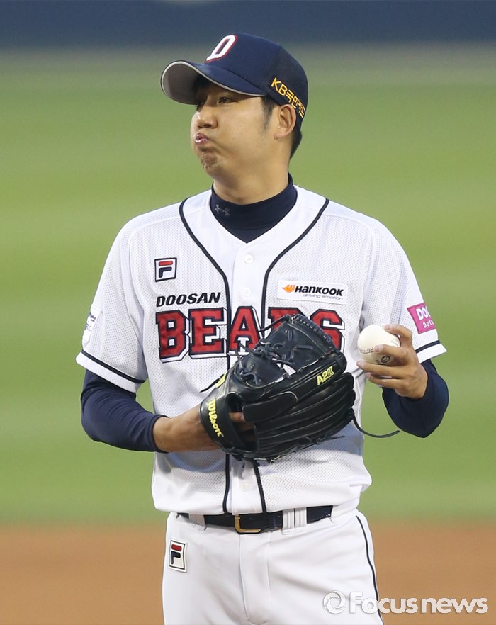 (서울=포커스뉴스) 25일 서울 잠실구장에서 열린 2016프로야구 kt-두산 경기에서 두산 선발투수 장원준이 1회초 3타자 연속 안타를 맞고 실망스런 표정을 짓고 있다.