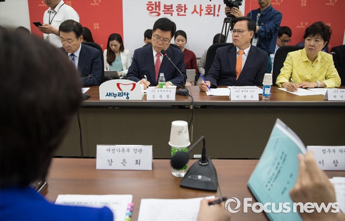 (서울=포커스뉴스) 김광림(오른쪽 세번째) 새누리당 정책위의장이 26일 오전 서울 여의도 국회에서 열린 여성안전대책간담회에 참석하고 있다.