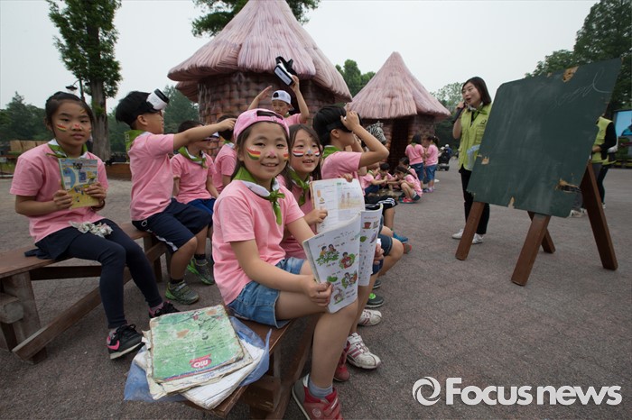 (서울=포커스뉴스) 26일 오전 서울 광진구 어린이대공원에서 열린 굿네이버스 '아프리카 희망학교 체험전'에서 초등학교 학생들이 아프리카 현지 체험을 하고 있다.