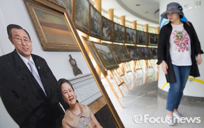 | △ 반기문 유엔사무총장 사진 바라보는 관광객 |