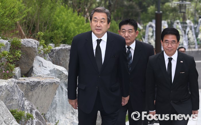 (서울=포커스뉴스) 김무성 새누리당 전 대표가 26일 오후 서울 동작구 국립서울현충원에서 열린 고 김영삼 전 대통령 묘비 제막식에 참석하고 있다.