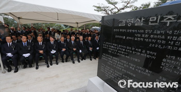 (서울=포커스뉴스) 고 김영삼 전 대통령 묘비 제막식이26일 오후 서울 동작구 국립현충원에서 열리고 있다.
