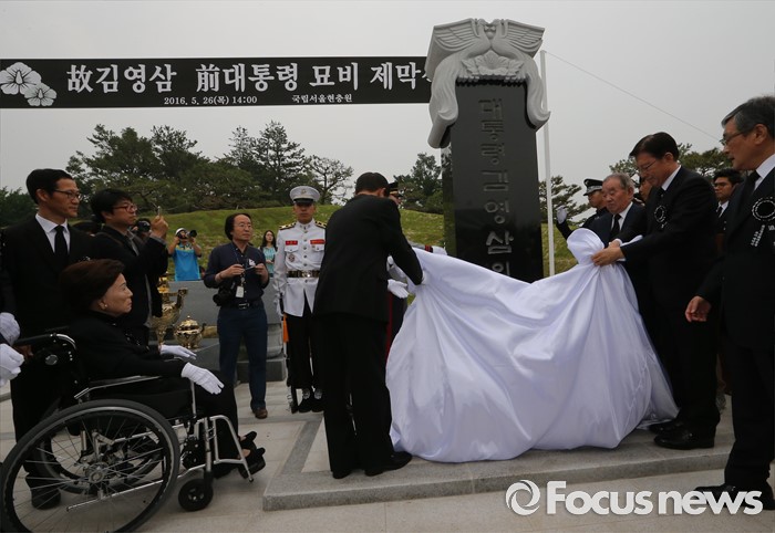 (서울=포커스뉴스) 고 김영삼 전 대통령 묘비 제막식이 26일 오후 서울 동작구 국립현충원에서 열리고 있다.