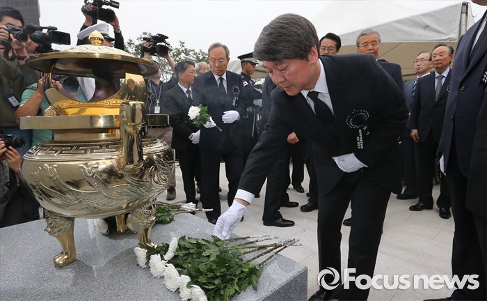 (서울=포커스뉴스)26일 오후 서울 동작구 국립현충원에서 열린 고 김영삼 전 대통령 묘비 제막식에서 안철수 국민의당 대표가 헌화를 하고 있다.