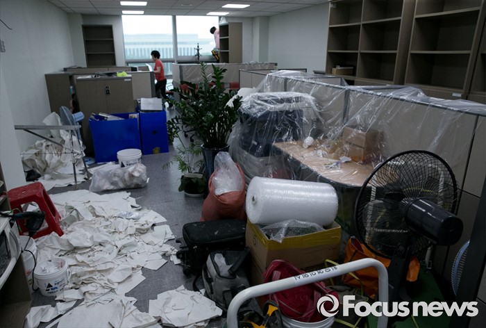(서울=포커스뉴스) 20대 국회 개원을 나흘 앞둔 26일 오후 서울 여의도 국회 의원회관 한 의원실에서 관계자들이 내부공사를 하고 있다.