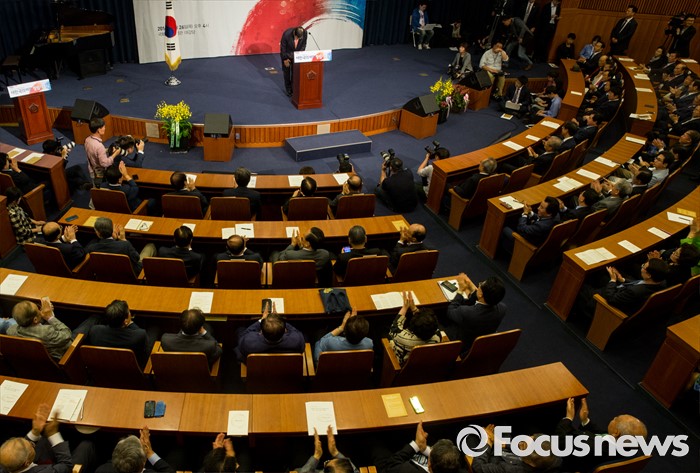 (서울=포커스뉴스) 26일 오후 서울 여의도 국회 헌정기념관에서 열린 '새한국의 비전' 창립 기념식에 참석한 정의화 국회의장이 인사말을 마친후 허리 숙여 인사하고 있다.