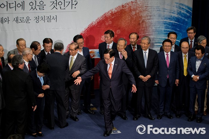 (서울=포커스뉴스) 26일 오후 서울 여의도 국회 헌정기념관에서 열린 '새한국의 비전' 창립 기념식에 참석한 정의화 국회의장이 기념촬영 자리를 정리하고 있다.