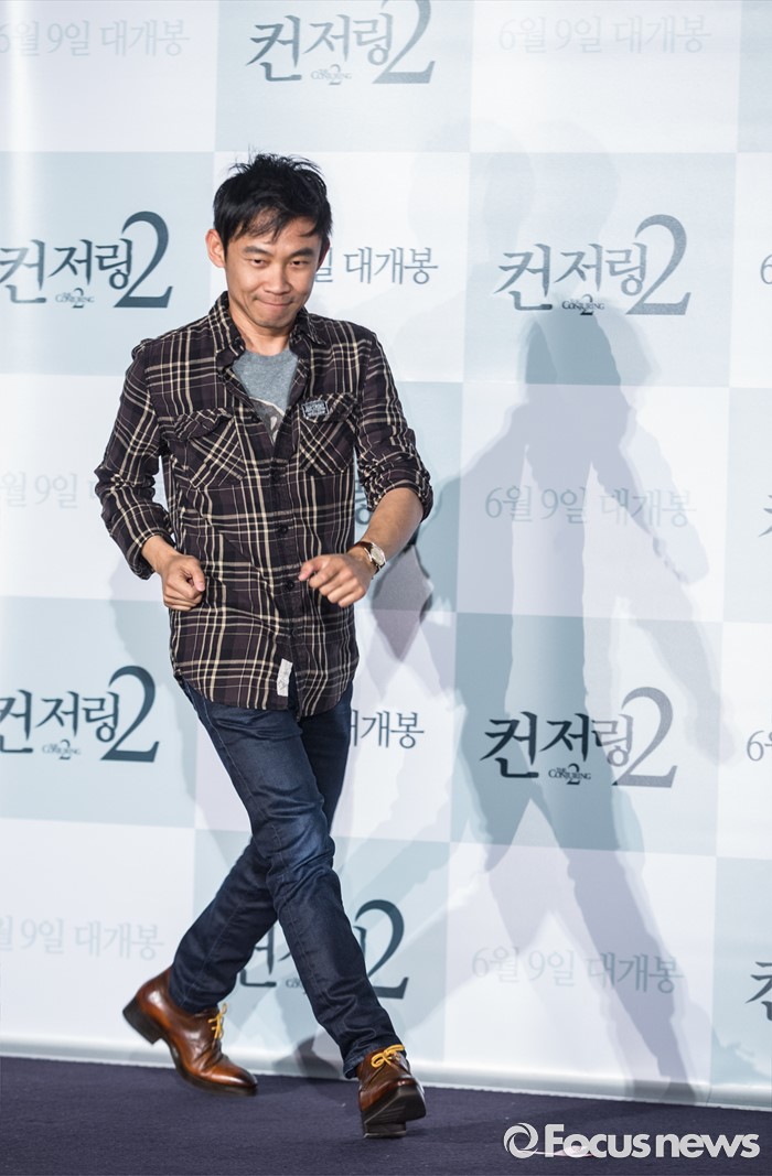 (서울=포커스뉴스) 26일 오후 서울 영등포구 여의도 CGV에서 영화 '컨저링2'의 제임스 완 감독이 기자간담회에 참석해 포토타임을 갖고 있다.