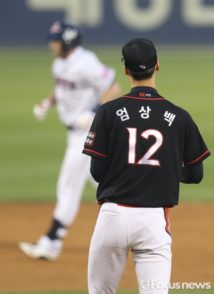 (서울=포커스뉴스) 26일 서울 잠실구장에서 열린 2016프로야구 kt-두산 경기에서 3회말 1사후 두산 에반스에게 홈런을 맞은 kt 투수 엄상백이 베이스 런닝을 지켜보고 있ㄷ다.