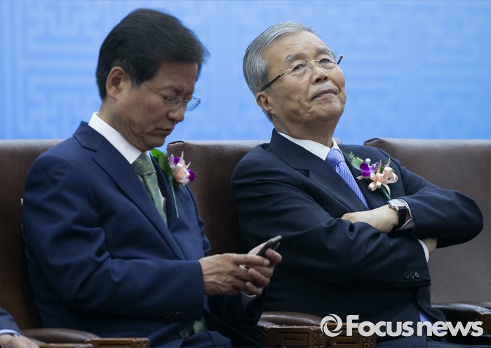 (서울=포커스뉴스) 27일 오전 서울 여의도 국회에서 열린 68주년 국회 개원 기념식에 참석한 김종인(오른쪽) 더불어민주당 비대위 대표와 천정배 국민의당 공동대표가 생각에 잠겨 있다.