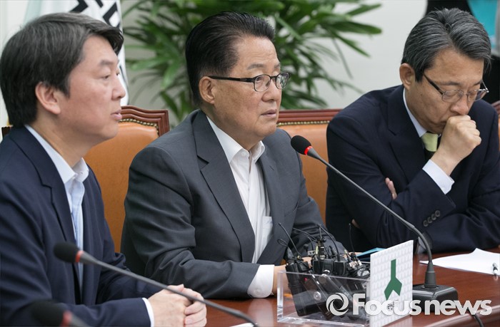 (서울=포커스뉴스) 박지원(가운데) 국민의당 원내대표가 27일 오전 서울 여의도 국회에서 열린 최고위원회의에 참석해 모두발언을 하고 있다.