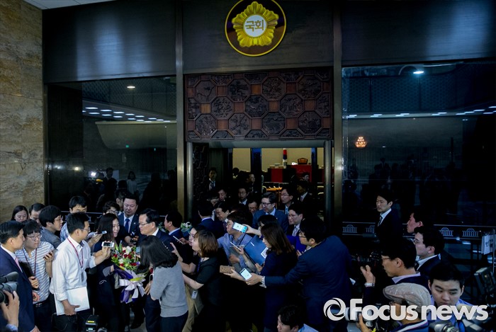 | △ 국회 본회의장 뒤로 하고 |