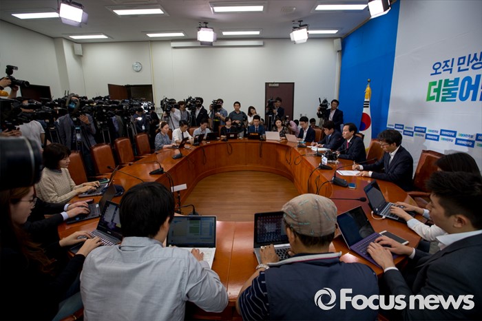 (서울=포커스뉴스) 우상호 더불어민주당 원내대표가 27일 오전 서울 여의도 국회에서 국회법 개정안 관련 대통령 거부권 행사에 대해 입장발표 하고 있다.