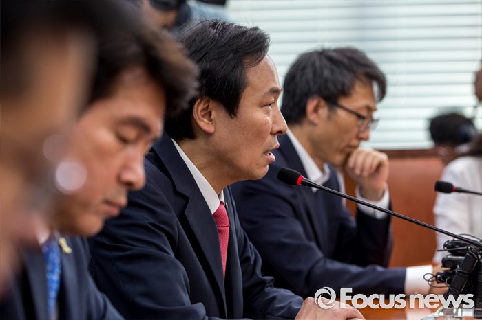 (서울=포커스뉴스) 우상호 더불어민주당 원내대표가 27일 오전 서울 여의도 국회에서 국회법 개정안 관련 대통령 거부권 행사에 대해 입장발표 하고 있다.