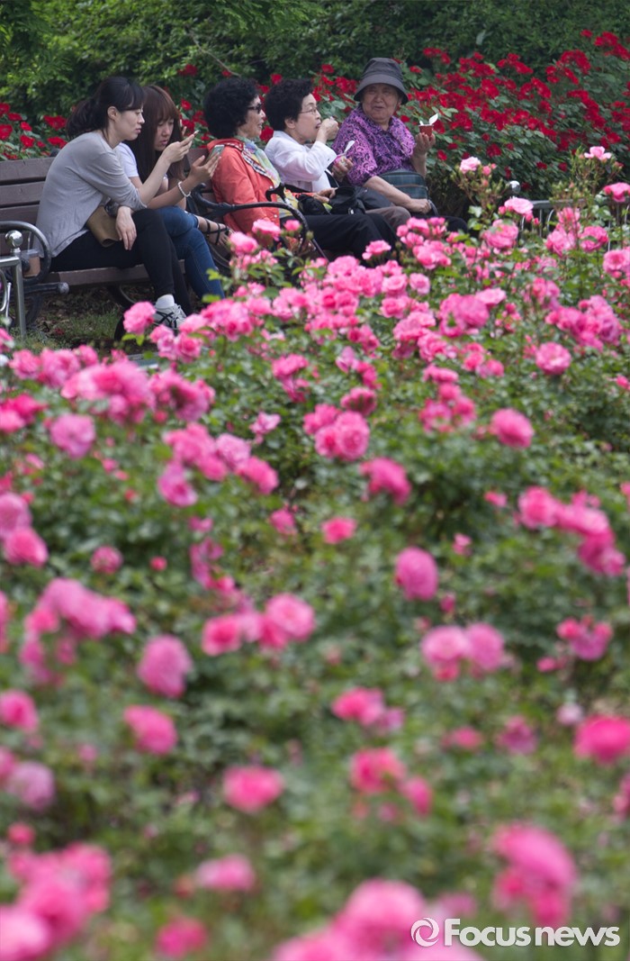 (서울=포커스뉴스) 27일 오후 경기도 고양시 일산호수공원에서 열린 2016 호수 장미 페스티벌을 찾은 시민들이 장미를 보며 즐거운 시간을 보내고 있다.