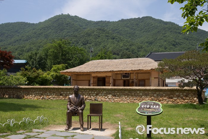 (음성=포커스뉴스) 27일 오후 충북 음성군 원남면 반기문 UN사무총장 생가 앞에 동상이 설치되어 있다.