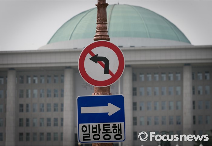(서울=포커스뉴스) 정부가 상시 청문회 등의 내용이 포함된 국회법 개정안에 대해 거부권을 행사해 여야가 입장 차이를 보이고 있는 27일 오후 서울 여의도 국회 경내에 도로이정표가 보이고 있다.