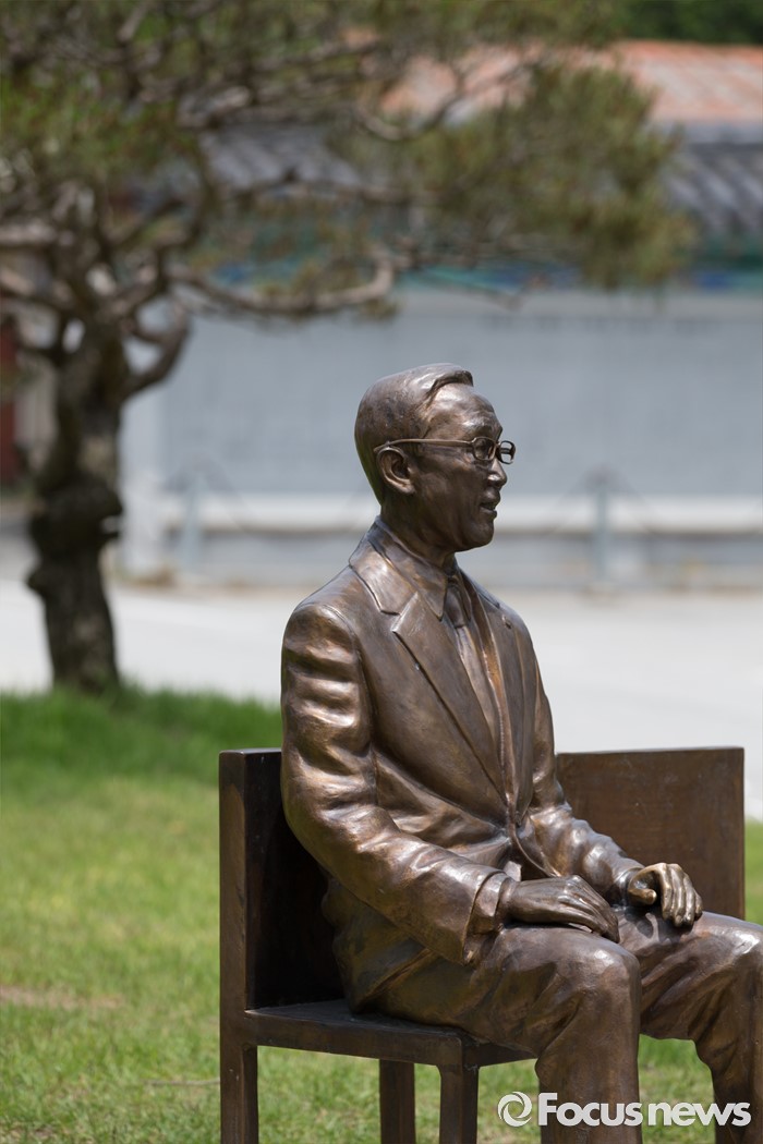 (음성=포커스뉴스) 27일 오후 충북 음성군 원남면 반기문 UN사무총장 생가 앞에 설치된 동상과 뒤로 보이는 2011년 고향방문 기념식수.