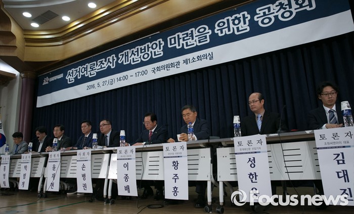 공청회에는 이종배 새누리당 의원, 박범계 더불어민주당 의원, 황주홍 국민의당 의원 등 여야 3당 의원을 비롯해 언론, 여론조사기관 관계자 등이 참석했다.