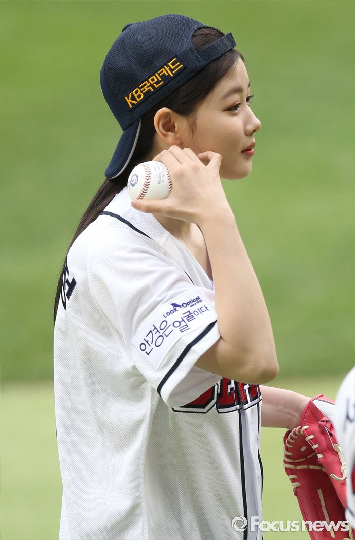 (서울=포커스뉴스) 27일 서울 잠실구장에서 열린 2016 프로야구 LG-두산 경기에 앞서 배우 김유정이 시구후 퇴장하고 있다.