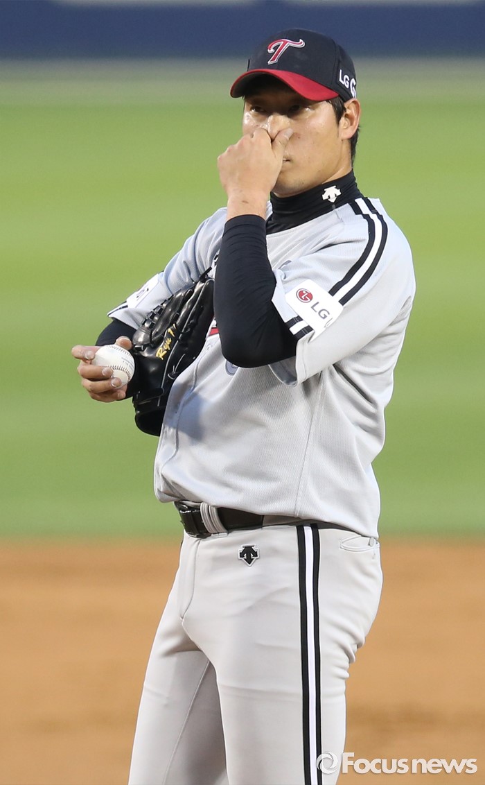 (서울=포커스뉴스) 27일 서울 잠실구장에서 열린 2016프로야구 LG-두산 경기 LG 투수 류제국이 2회말 연속 안타를 맞고 실점한후 아쉬워하고 있다.