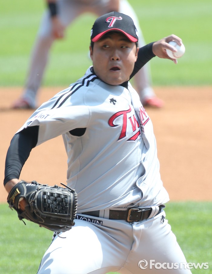 (서울=포커스뉴스) 29일 서울 잠실구장에서 열린 2016프로야구 LG-두산 경기에서 1회말 LG 선발투수 이영재가 투구하고 있다.