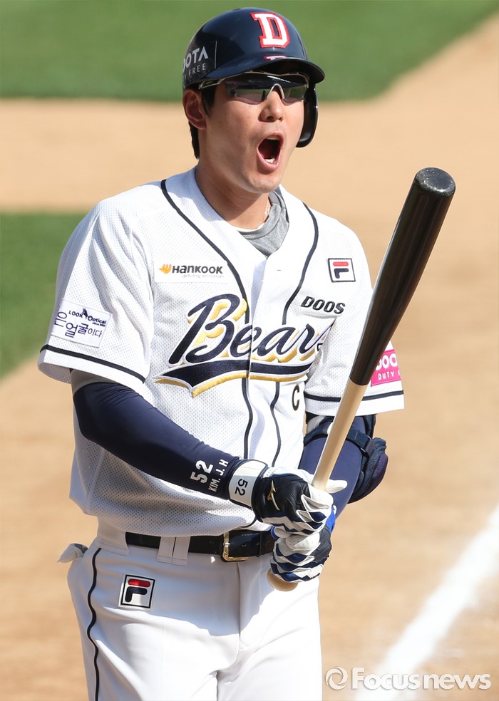 (서울=포커스뉴스) 29일 서울 잠실구장에서 열린 2016프로야구 LG-두산 경기 6회말 무사 1루에서 두산 김재호가 몸에 맞는 볼로 진루하고 있다.