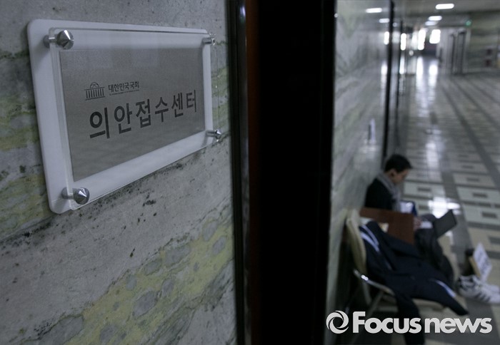 (서울=포커스뉴스) 20대 국회 임기가 시작된 30일 오전 서울 여의도 국회 의안과 앞에서 배덕광 새누리당 의원, 박정 더불어민주당 의원의 보좌관들이 각각 1, 2호 법안 접수를 위해 대기하고 있다.